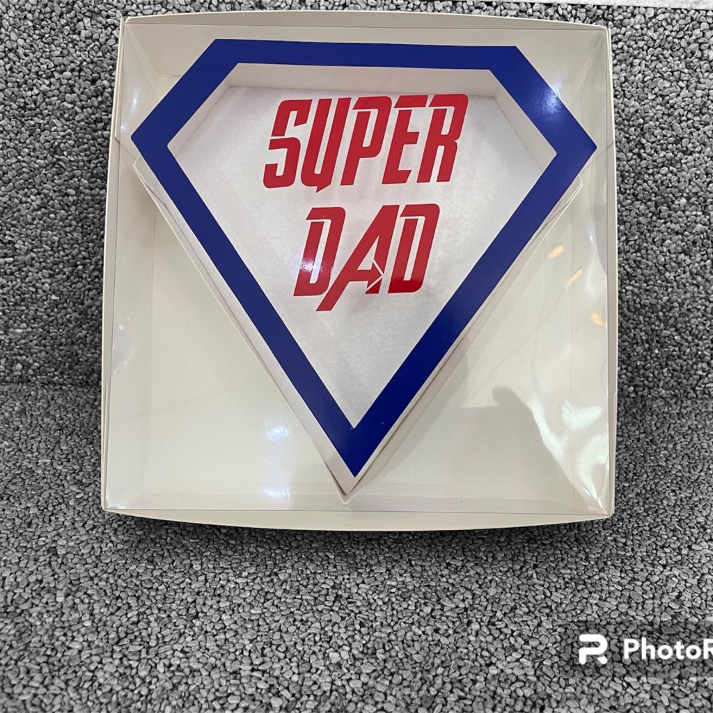 Superman logo shape in a display box with Super Dad vinyl print on the lid.
